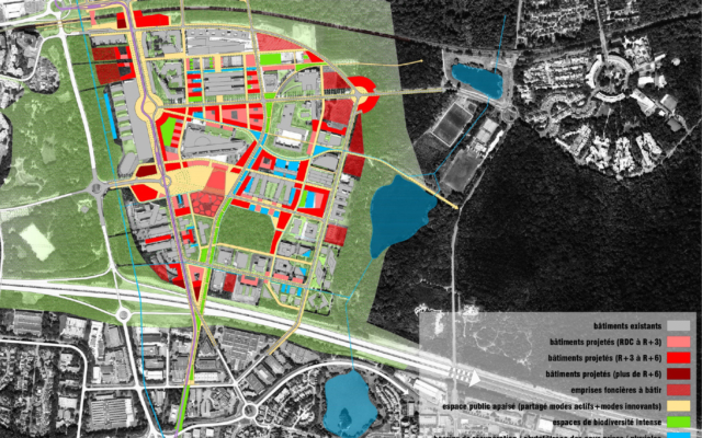 Dans la Cité Descartes se côtoient actuellement enseignement, recherche et activités économiques sans que ne se créent des échanges porteurs d’innovation. Un des enjeux est de créer des lieux qui favorisent ces échanges. Les nouvelles potentialités foncières dégagées de la réorganisation complète des espaces publics permettent d’envisager une réelle intensification du campus.