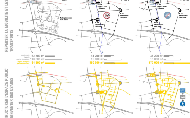 La générosité des espaces publics est un des principaux atouts de la Cité Descartes. Actuellement organisés autour du « tout automobile », les espaces de circulation peuvent être repensés pour accueillir d’autres fonctions et dégager à terme de nouvelles potentialités foncières permettant une intensification du site. Pour le campus Descartes, c’est aussi l’occasion de repenser les modes de déplacements et d’être un démonstrateur de la ville des mobilités durables.